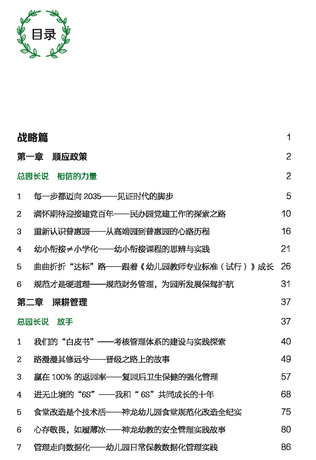 全书分为战略、品牌、人本三个篇章,以叙事与理论相结合的形式,从幼儿园的品牌推广、管理制度、课程研发、活动组织、环境创设、招生模式以及团队建设等方面入手,向读者展示了神龙幼教从最初的单体公办园,经过社会化改制后走上集团化管理道路,发展成如今的5家分园和3家教育公司的创举。书中的故事对从事幼教行业的读者职业成长具有参考价值、能为民办园的未来发展指引方向。