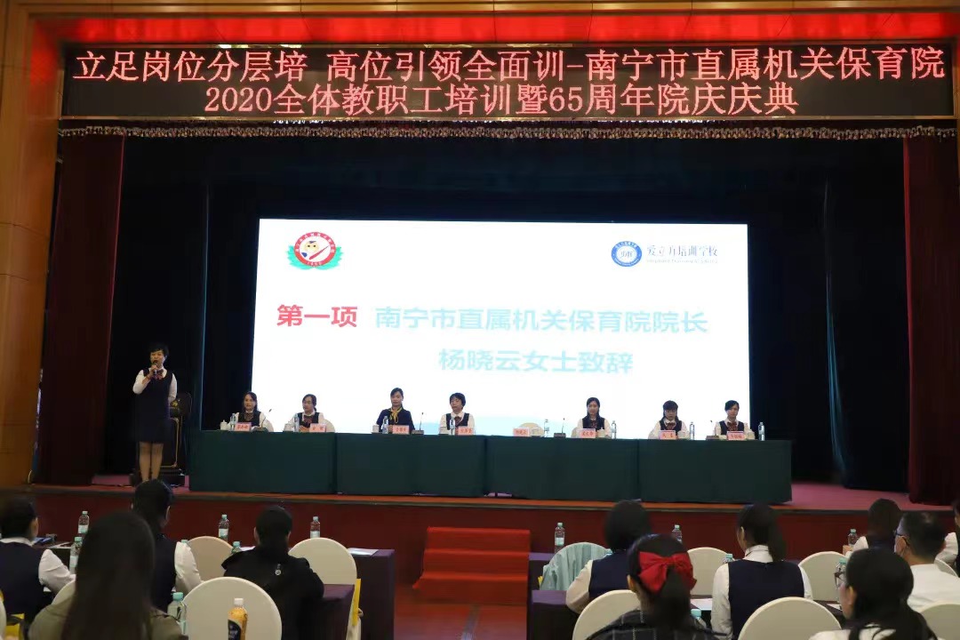 11月14日,“立足岗位分层培 高位引领全面训——南宁市直属机关保育院2020全体教职工培训在南宁市明园饭店拉开帷幕。本项目为南宁市直属机关保育院根据办园发展的实际需求,利用财政资金开展的专项培训。通过2020年南宁市人民政府部门公开招投标,由必赢76net线路官网培训学校中标承办。南宁市直属机关保育院院长杨晓云,南宁市直属机关保育院书记宋萍坚,南宁市直属机关保育院副院长梁文华,南宁市直属机关保育院副院长冯春,南宁市直属机关保育院副院长韦恒梅,南宁市直属机关保育院副院长俞珊,南宁市直属机关保育院副院长蒋丹娜,必赢76net线路官网培训学校校长金锦秀出席开班仪式,280多名学员参加此次培训。