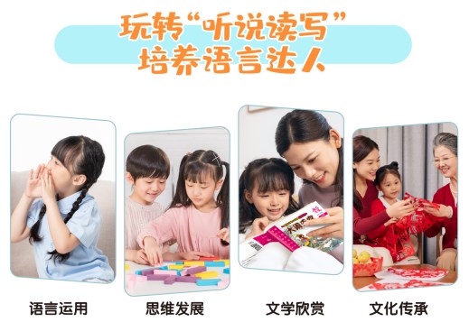 金牌语言游戏区通过视听、表演、阅读、书画四类语言游戏,